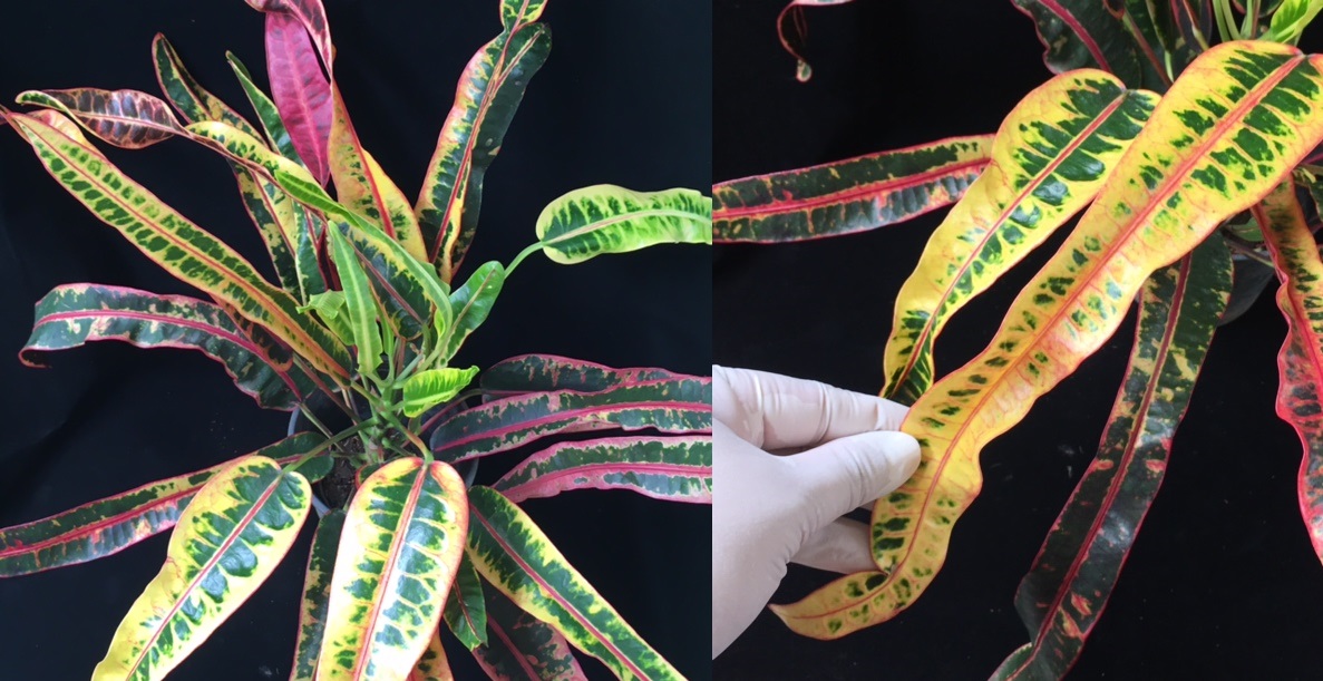 Как на фото, в горшке. Название на русском: Кодиеум Индиа Даенг (Ф1)