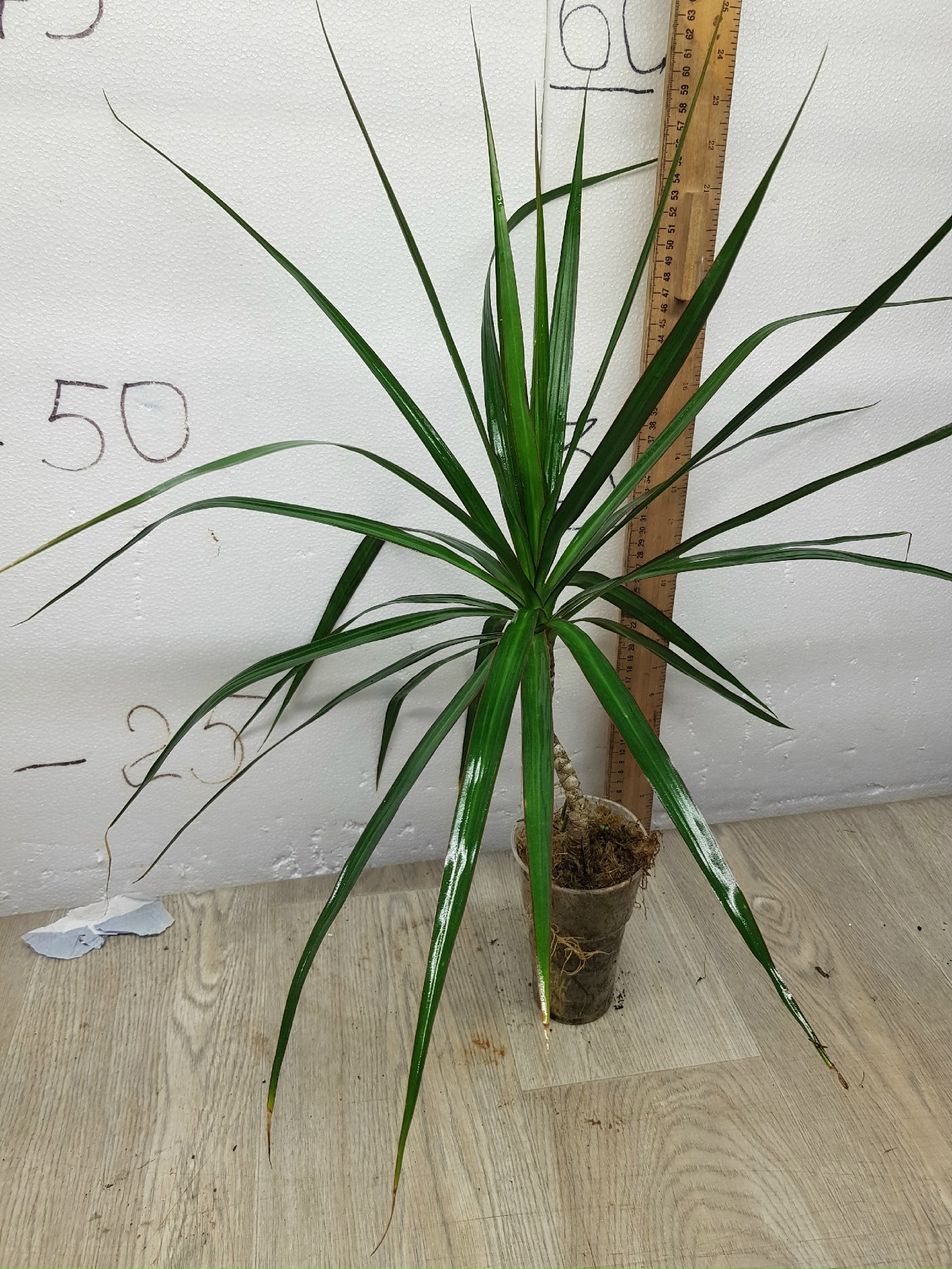 как на фото, в стакане. Название на русском: Драцена маргината