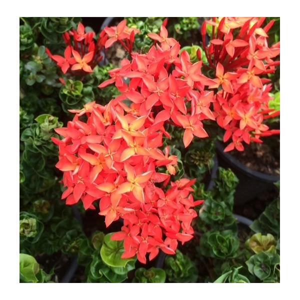 как на фото, в пакете. Название на русском: Иксора гибрид Хинди Роп (Hindu - с англ. "индуистская". Rope - с англ. "веревка")