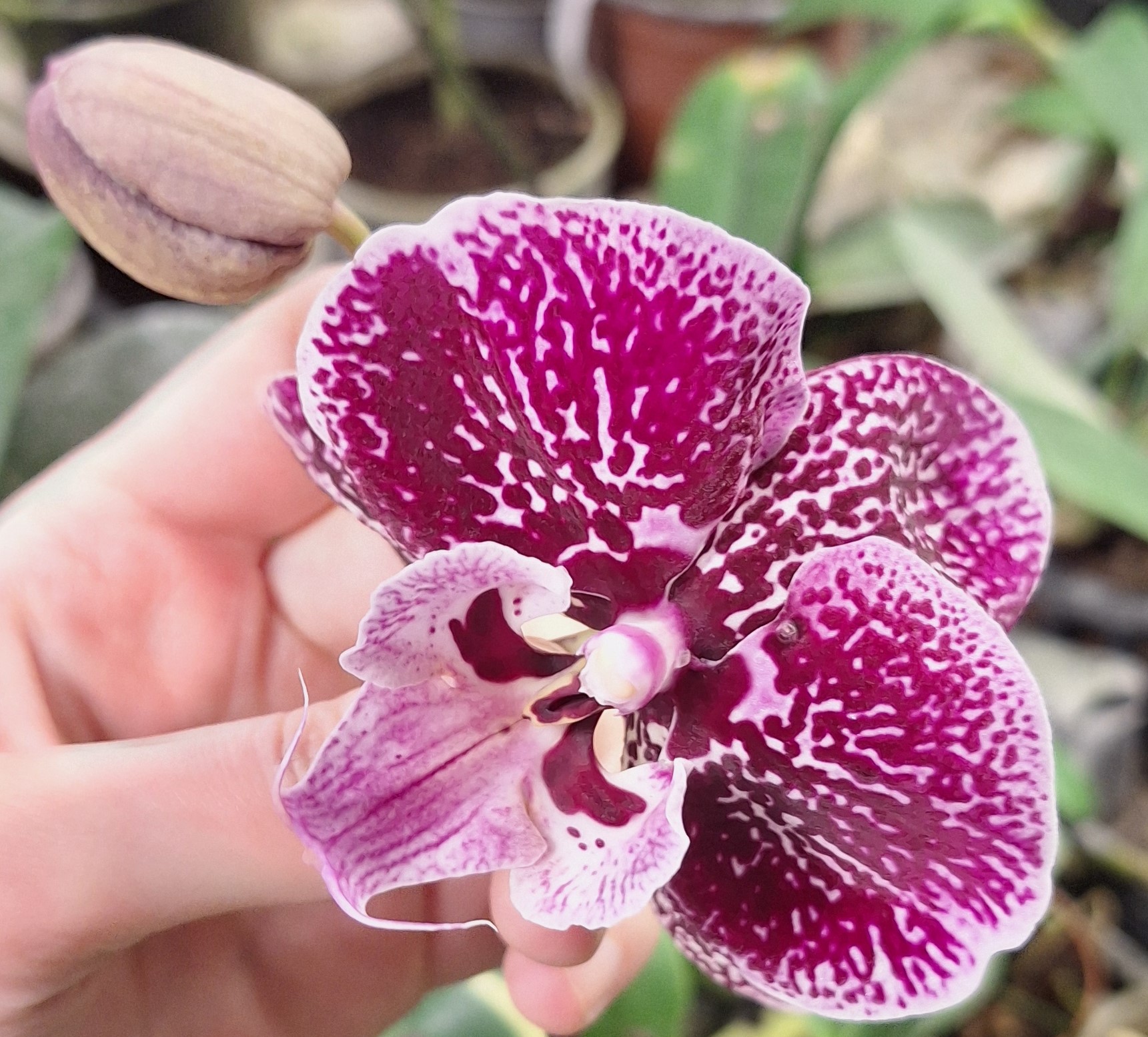 как на фото. Название на русском: Фаленопсис Мики Блек Витч