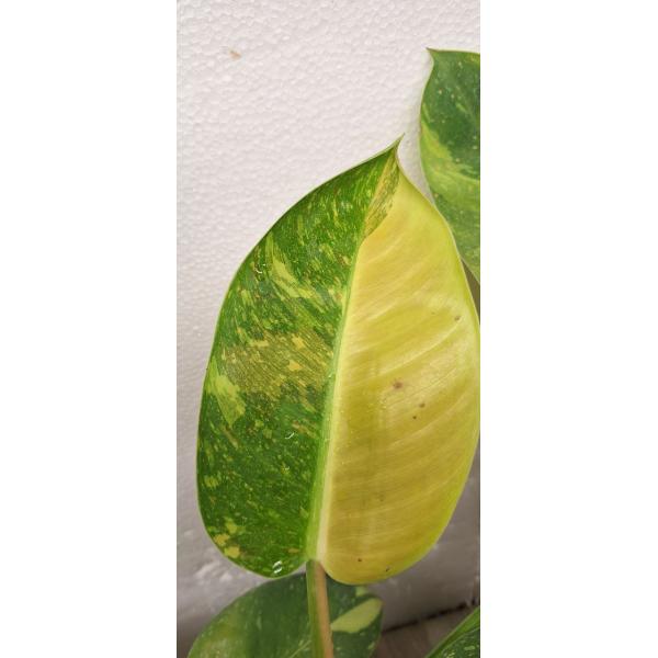 Варегатность варьируется от кремово-белого до желтого, зависит от освещения.