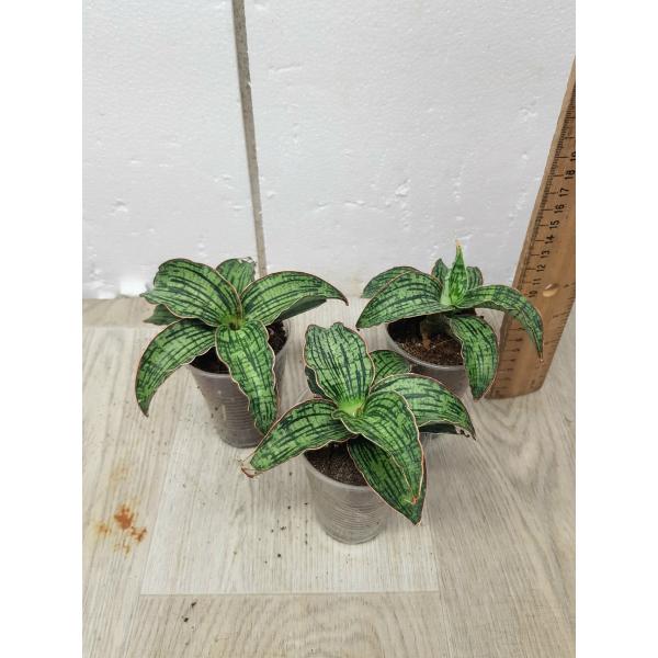 пример как на фото. В стакане. Название на русском: Сансевиерия Клеопатра.