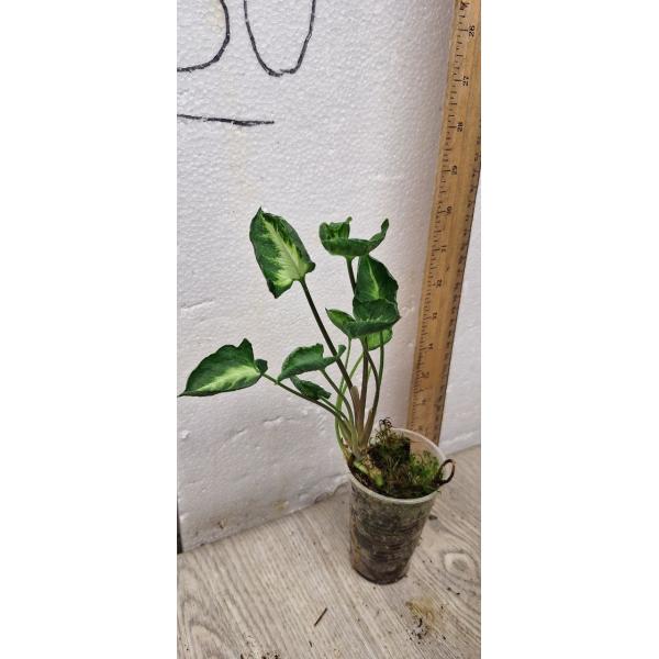 как на фото, в стакане. Название на русском: Сингониум 'Мани Кап' - 'Годзилла'