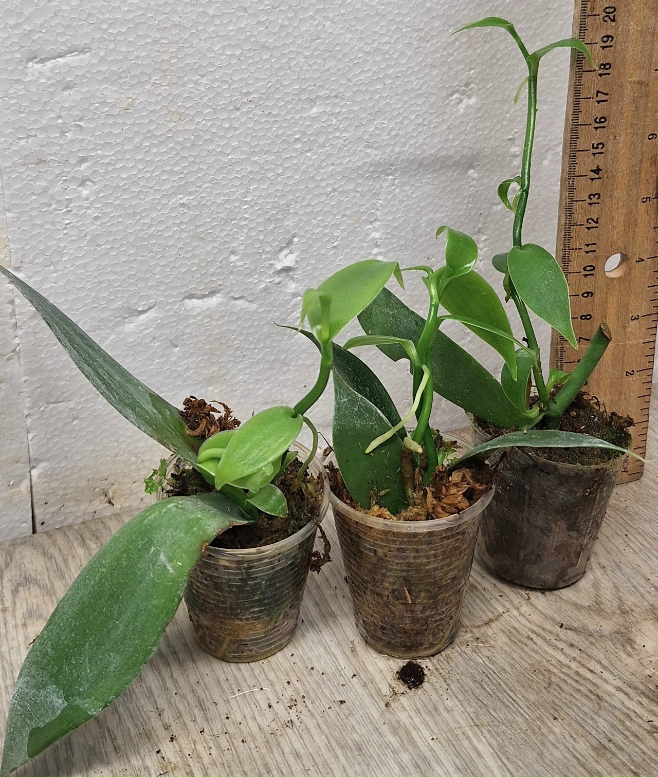 как на фото, в горшке. Название на русском: Ваниль планифолия зеленая.