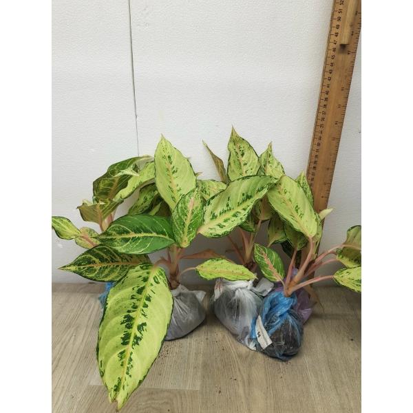 как на фото, в пакете. Название на русском: Аглаонема Лаки (Lucky - с англ. "Удача")