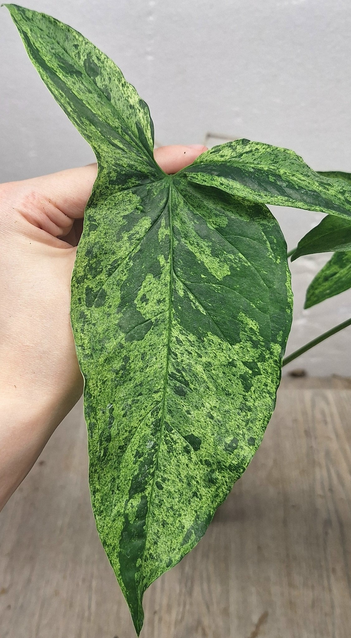 как на фото, в горшке. Название на русском: Сингониум ножколистный Крапчатое Мохито