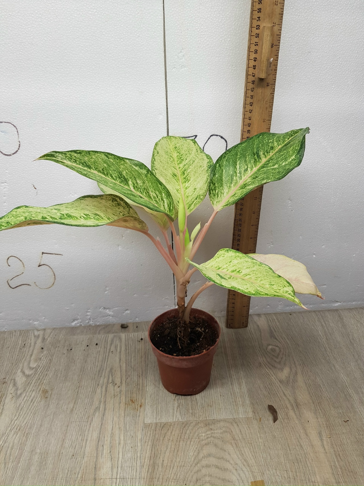 Как на фото, в горшке. Название на русском: Аглаонема Фрозен блэк (Frozen - с англ. "Заморженный" или "замерзший", black - с англ. "черный").