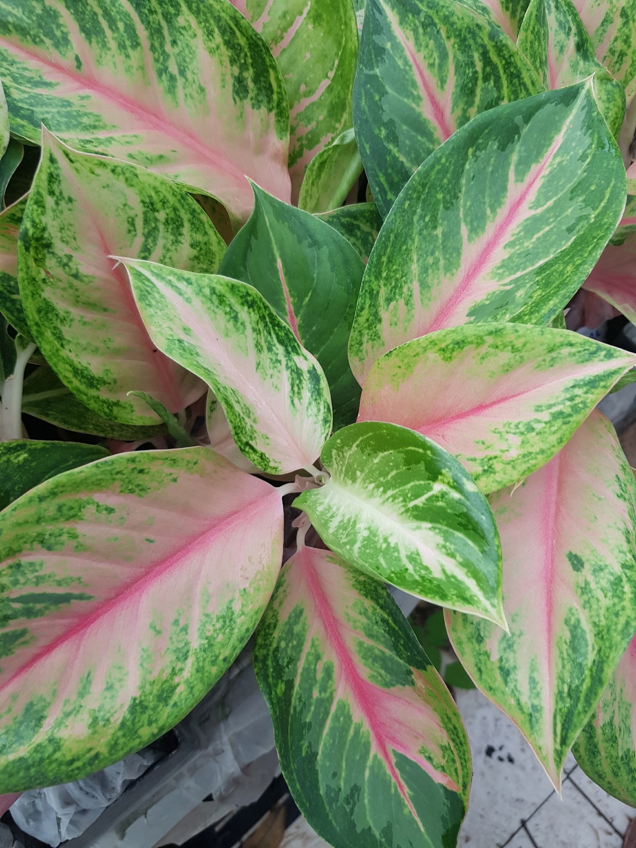 Как на фото, в пакете. Название на русском: Аглаонема ЛукБей Розовая.