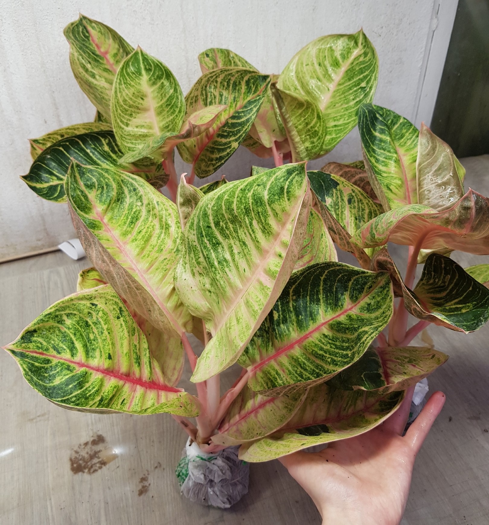 как на фото, в стакане. Название на русском: Аглаонема Мунлайт Розовая (Moonlight - с англ. "Лунный свет")