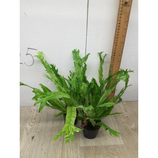 Как на фото, в горшке. Название на русском: Асплениум нидус варегатная Япония.