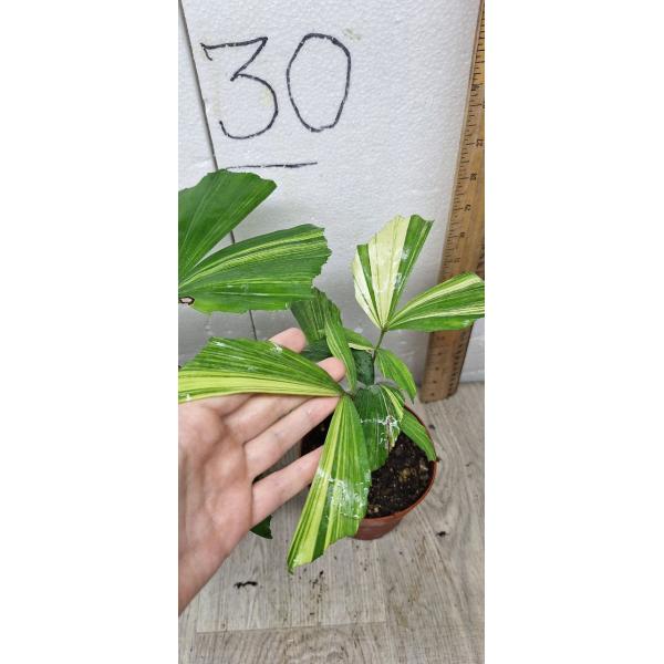 в горшке, как на фото маленькое растение. Название на русском: Кариота Варегатная.