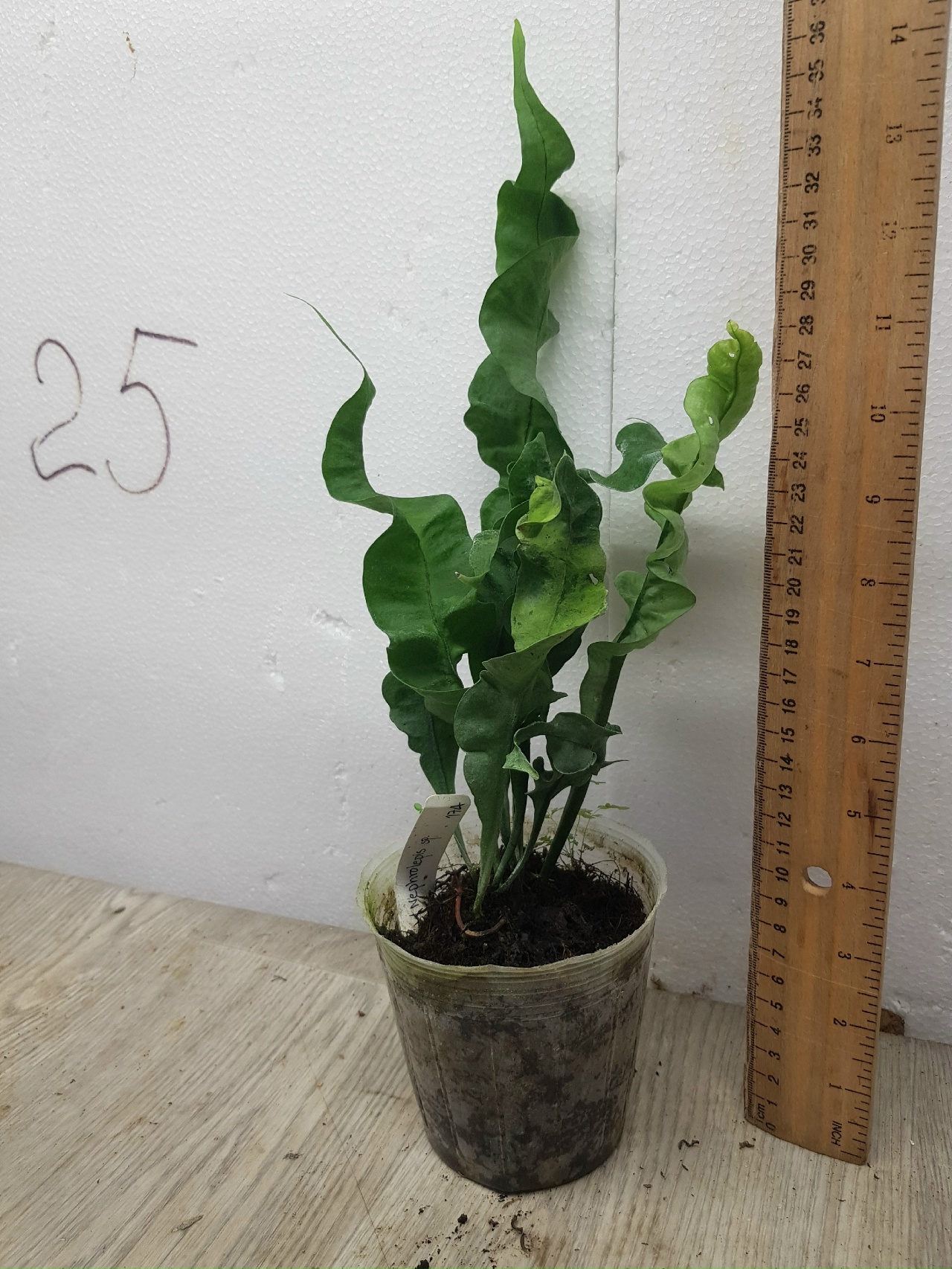 Как на фото, в горшке. Название на русском: Микросорум пинстатум Твистед Карлик (компактная форма) (Twisted - с англ. "Крученный")