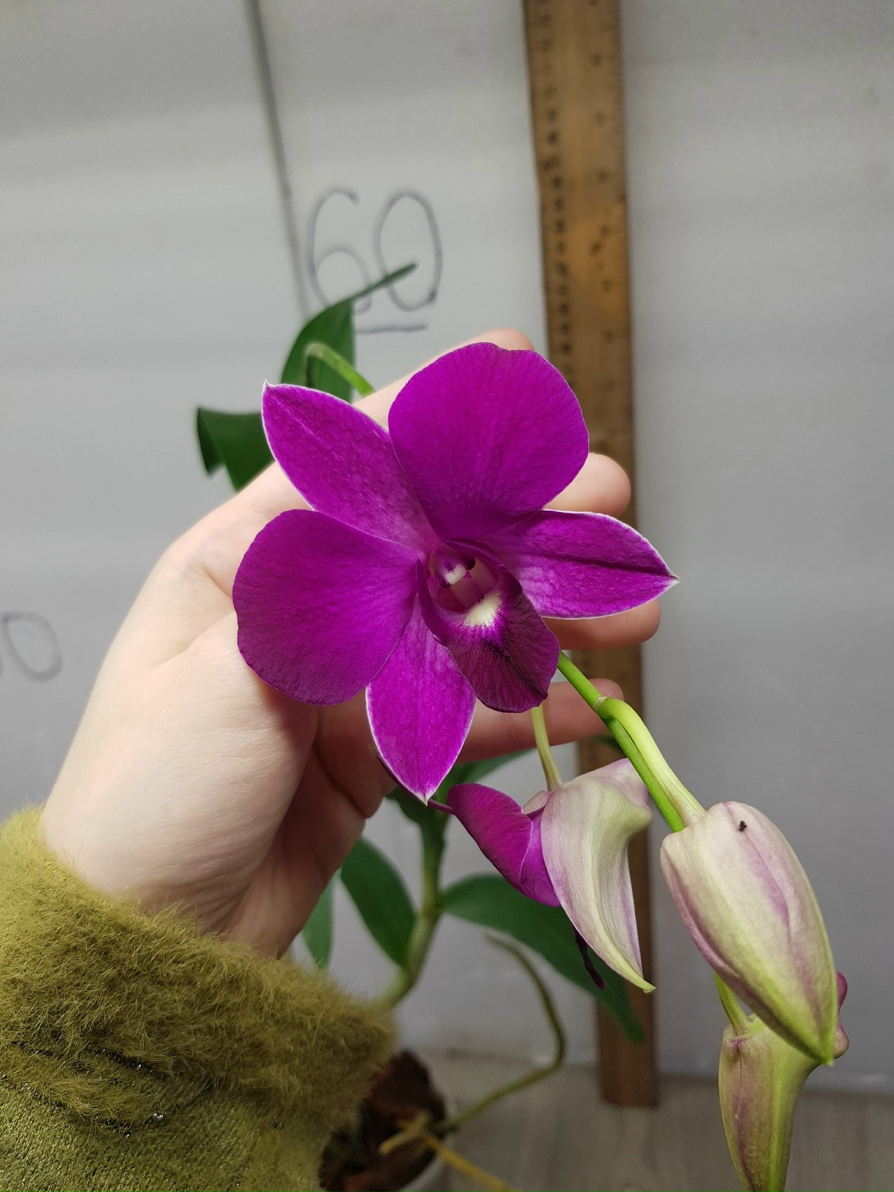 как на фото, в горшке. Название на русском: Дендробиум Бурана Красный Рубин.