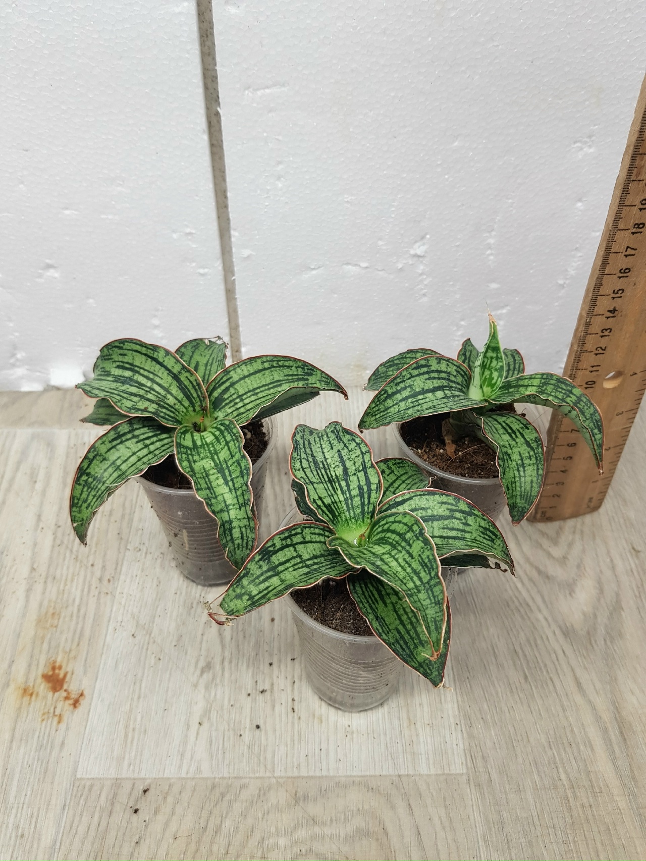 пример как на фото. В стакане. Название на русском: Сансевиерия Клеопатра.