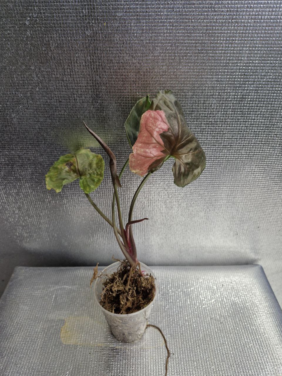 как на фото, в стакане. Название на русском: Сингониум Стравберри Айс