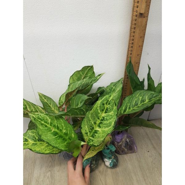 как на фото, в пакете. Название на русском: Аглаонема Лаки зеленая. (Lucky - с англ. "Удача")