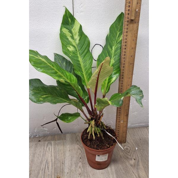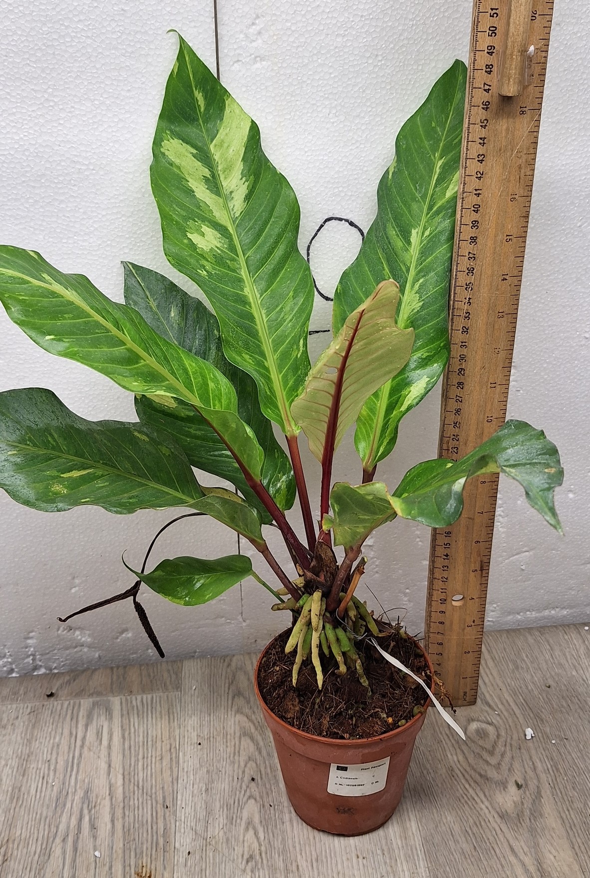 как на фото, в горшке. Название на русском: Антуриум пестрый.