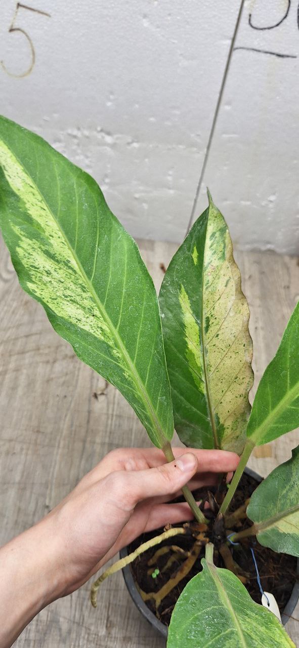 как на фото, в горшке. Название на русском: Антуриум варегатный.